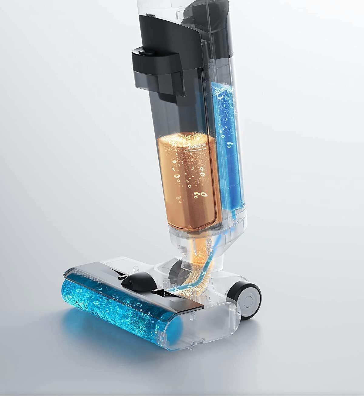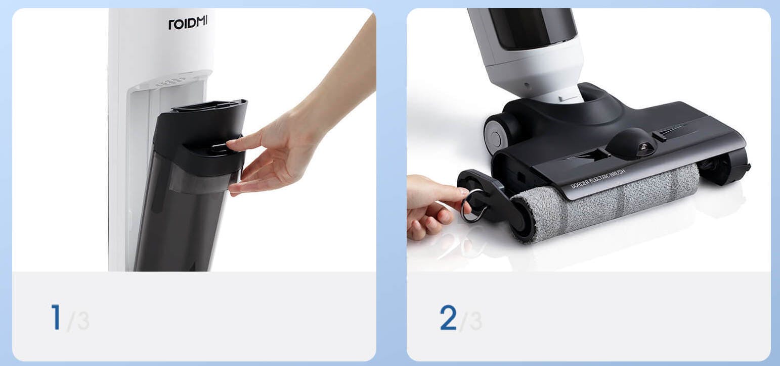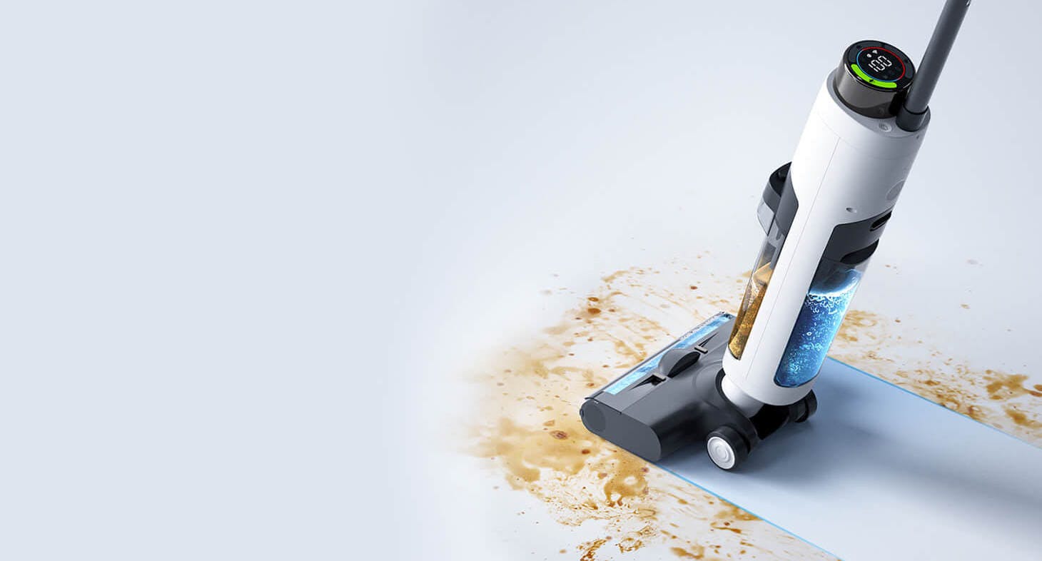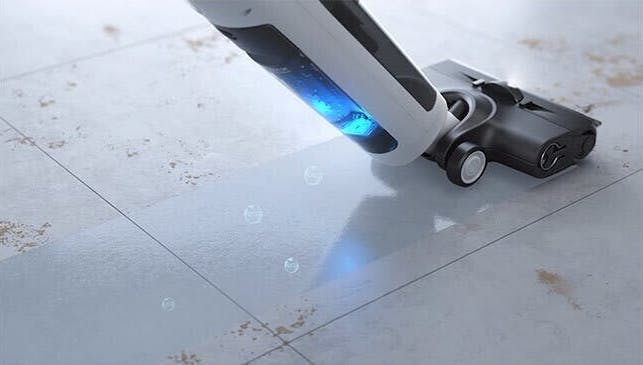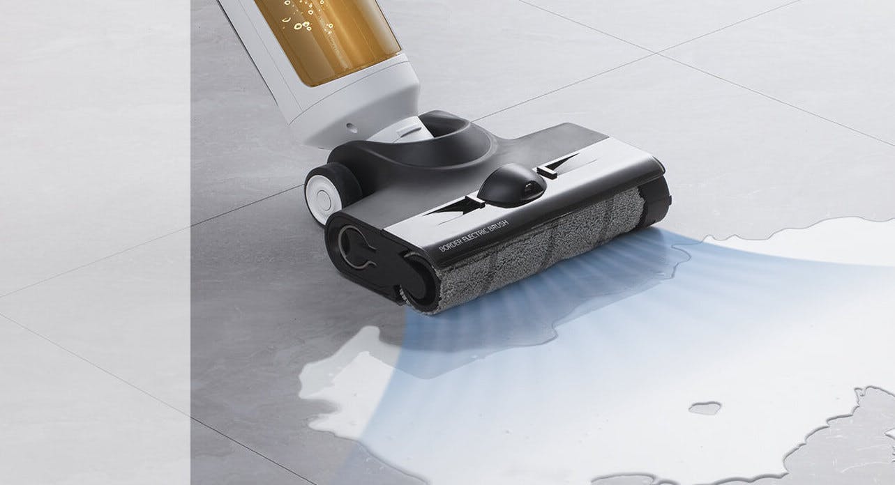 「ROIDMI NEO」は、強力な吸引力と乾湿両対応のブラシヘッドでゴミと水分を一緒に吸い取ることも可能。さらに、その後のモップがけ(拭き掃除)や除菌まで同時に行うことができるため、床掃除の手間が格段に減らせます。