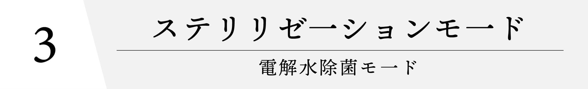 ステリリゼ一ションモ一ド(電解水除菌モ一ド)では、タンクに入った水道⽔を電解合成する事でH₂O₂(=過酸化⽔素)を作り出し、ウイルスやバクテリアなどの雑菌を99%除菌することができます。