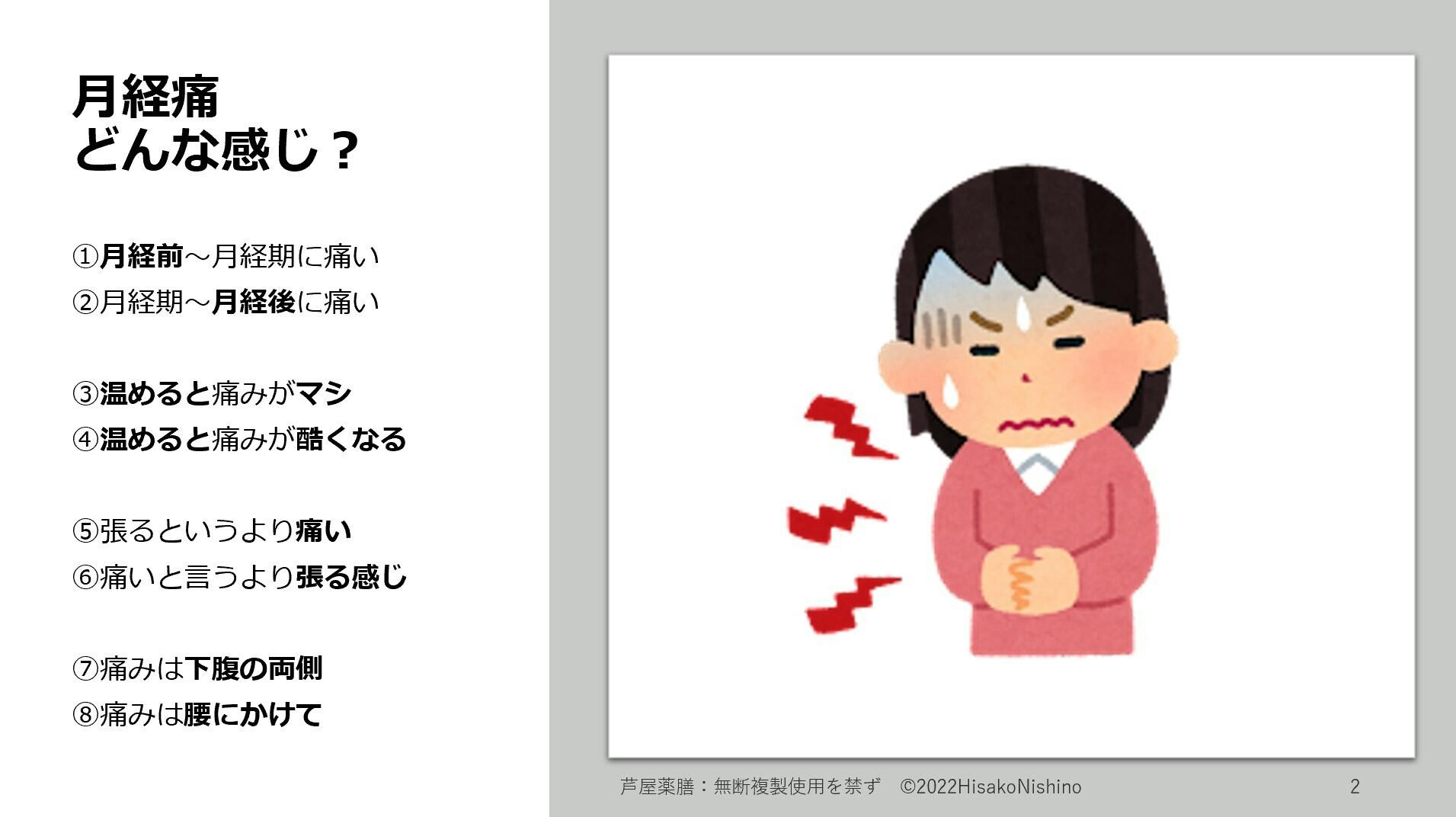 月経痛以外に月経に連動する症状(例、径行頭痛、経行乳房脹痛)もご紹介します。