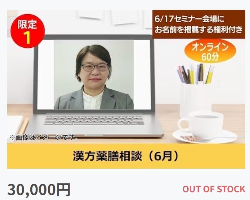 このリターンはオンラインで6月に漢方薬膳相談できる権利です。