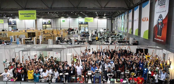 皆様からご支援頂いたユニフォームのおかげか、今年は他のチームから「Happy Mini 」と呼ばれることもたびたび。「このロボットのデザインが一番好きだ!」とわざわざ言いに来てくれる他のリーグの研究者?もいました!うれしい!Happy!
