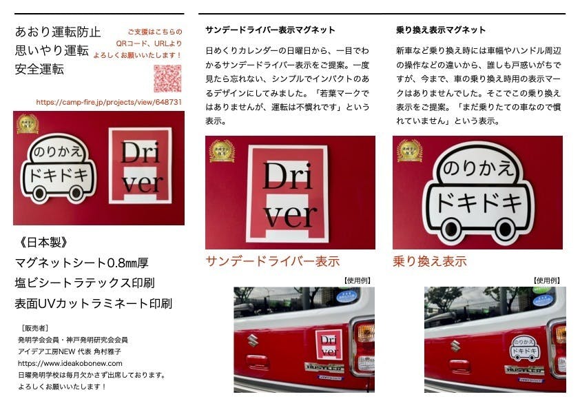 いよいよ本日16時に《サンデードライバー・乗り換え表示マグネット》のクラウドファンディングがスタートいたしました。