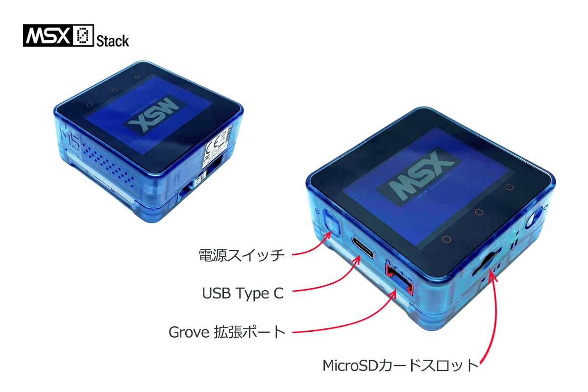 その第一弾として、IoT向けのコンピュータとしてM5 StackをベースとしたMSX0 Stackを用意いたしました。特別仕様として、筐体をスケルトンブルー(MSXブルー)にしてなつかしさを誘うガジェットに仕上げました。