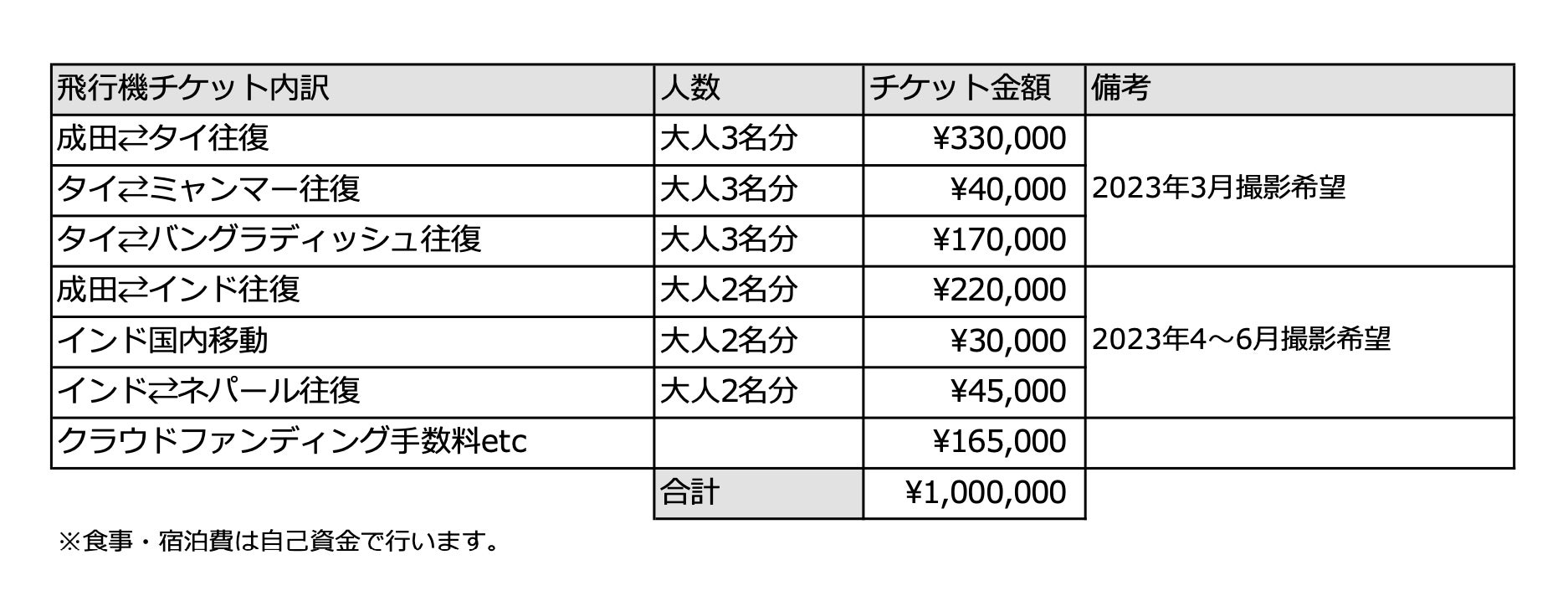 集めた支援金は3月から予定されている5カ国分の撮影に感謝を持って使用させていただきます。