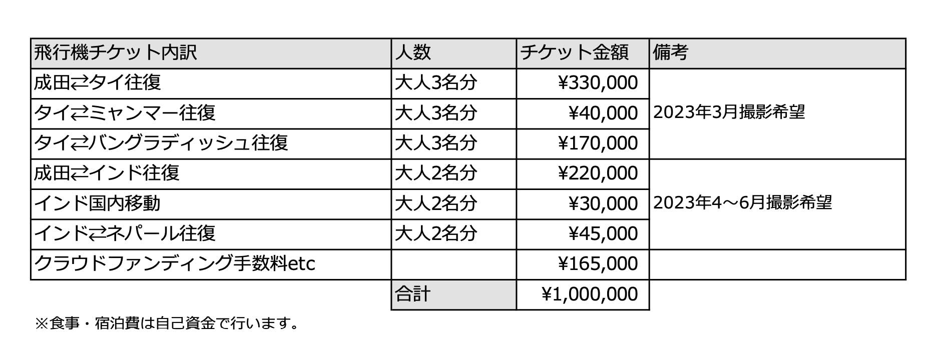 集めた支援金は3月から予定されている5カ国分の撮影に感謝を持って使用させていただきます。