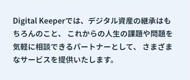 デジタル終活支援オンラインサービス「Digital Keeper(デジタルキーパー)」を運営しております株式会社デジタル金庫の山口と申します。