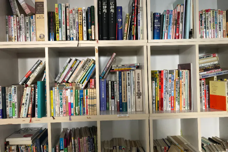 ビジュアルの写真は、現在の弊社の誰でも見ることのできる本棚です。