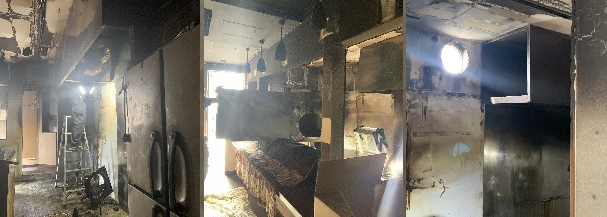 厨房内も冷蔵庫と冷凍庫合計3台が熱で故障し、ステンレス製品も焼けて変質してしまい調理道具も使い物にならなくなり、ほぼ新しいお店をもう一軒作らないと店が再開できないほどのダメージでした。