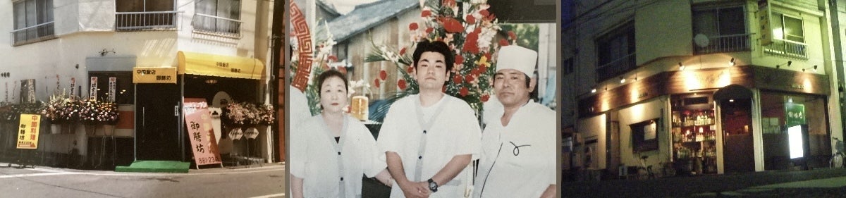 創業当時外観1990年撮影/先代と店主1992年撮影/御膳坊チャイナキッチンリニューアル後旧建物2011年撮影