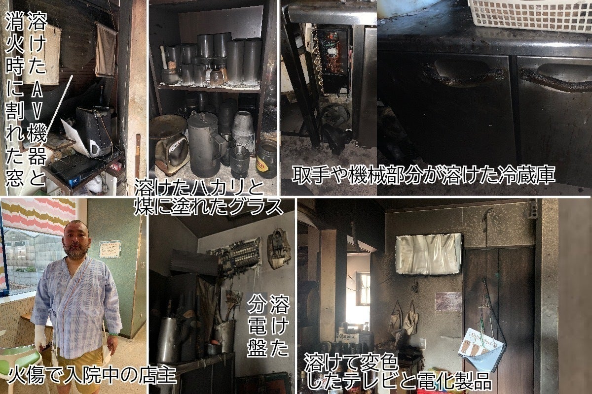 そして、店主は火災直後に店に設置していた消火器で自ら初期消火にあたった際に熱風を受けてしまい、右手の指から肩までと顔半分と左手の手の甲に大やけどをして、一部Ⅲ度熱傷で救急治療室に1か月半、2度の皮膚移植を受けました。