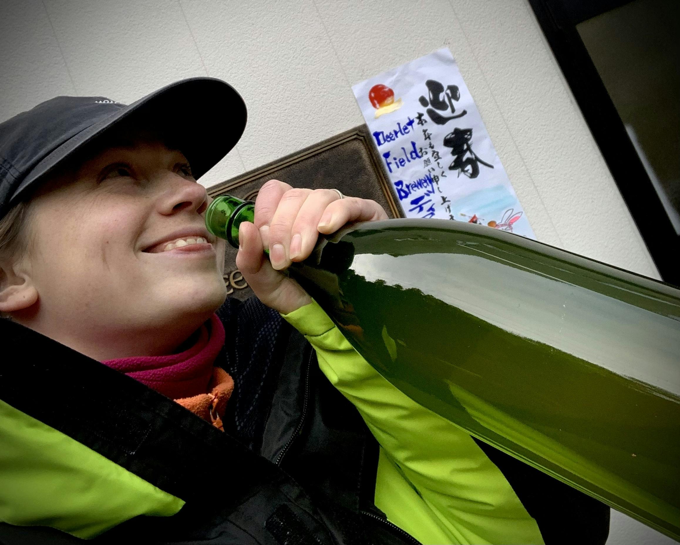 実は昨年末よりじわりじわりと今回のスモークグリーン色の瓶が醸造所に2000本ずつ納品されており、特殊色ということで納品最低ロット1万本といわれ、ゾワゾワしておりました。。静かな醸造所内で瓶の山が呼吸をしているかのような、、、