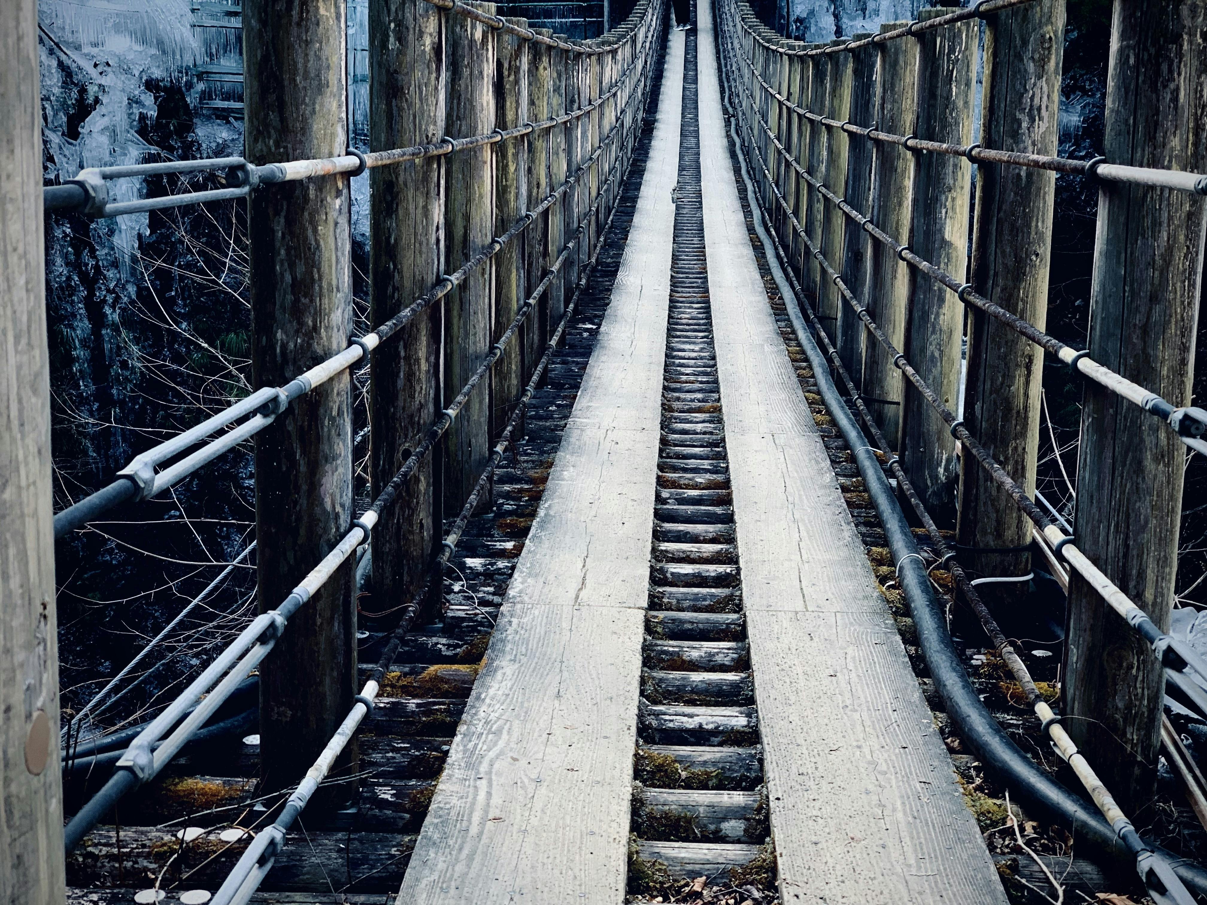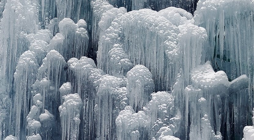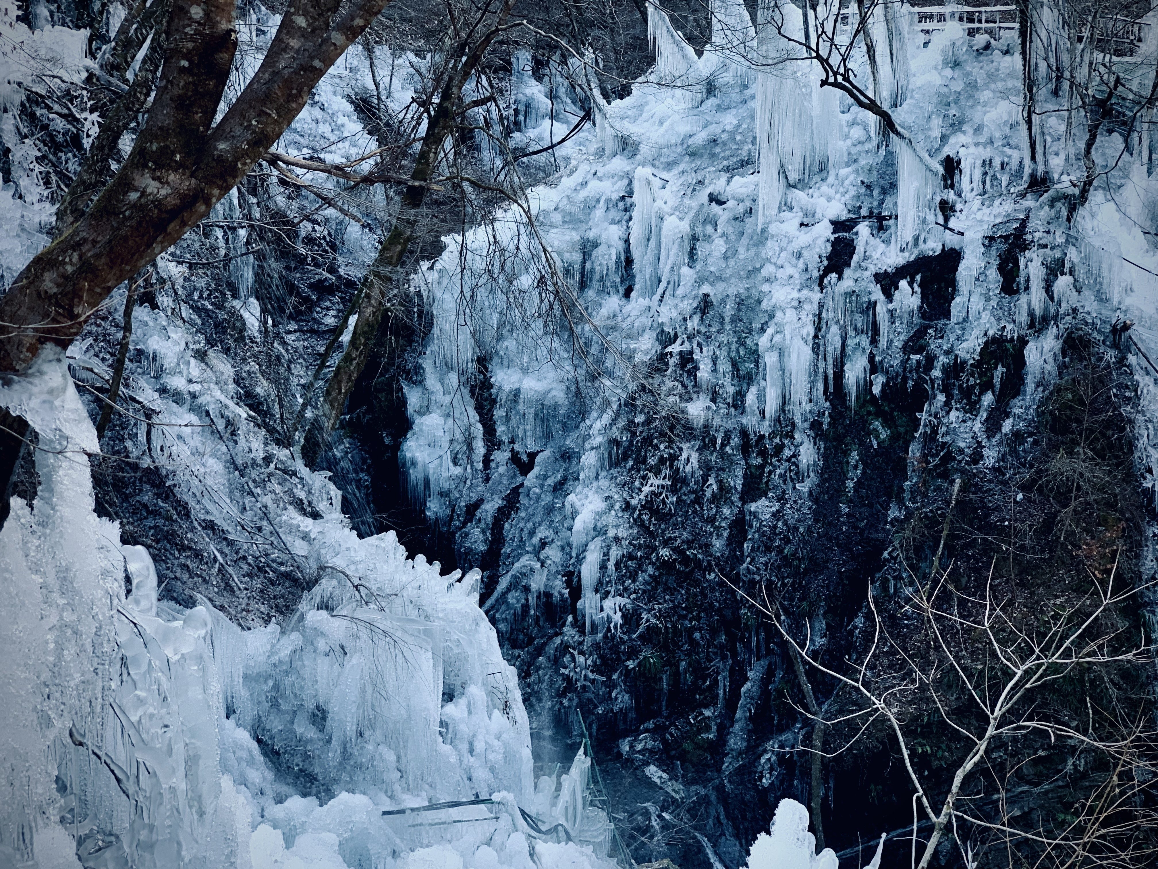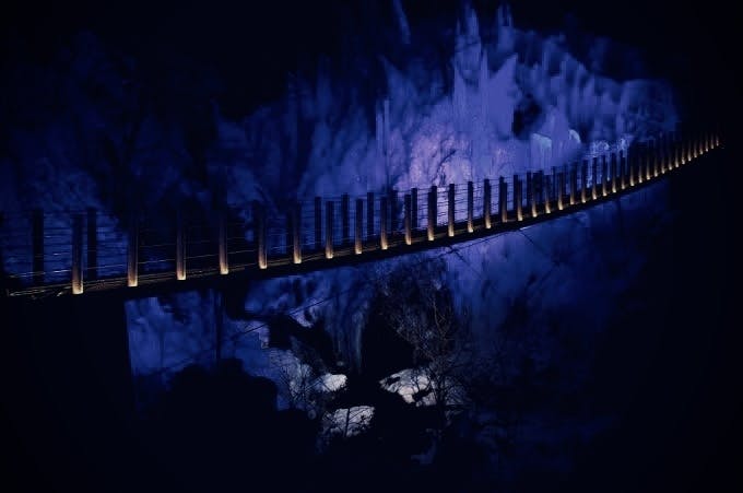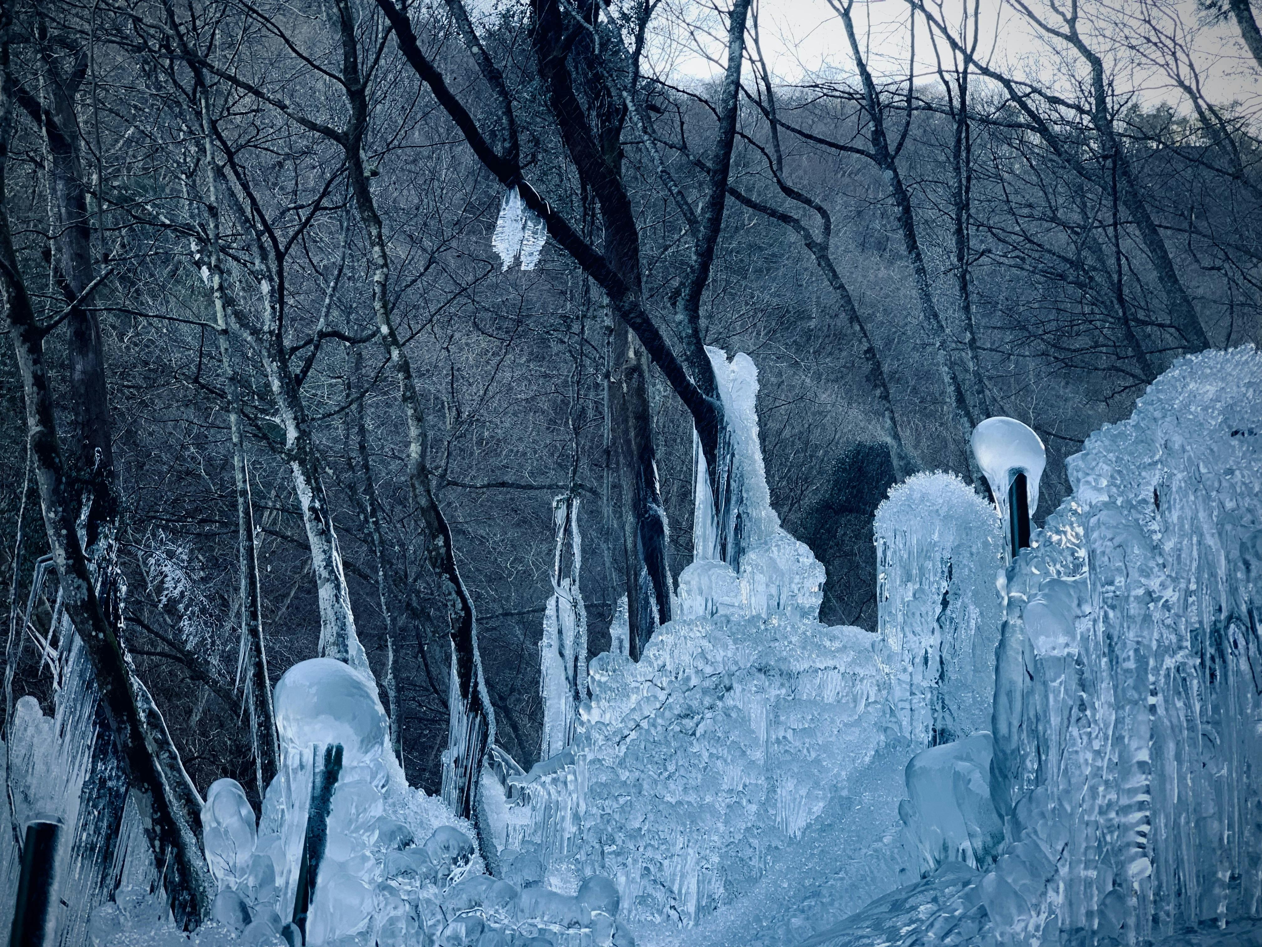 吊り橋を渡ると突如として氷柱が出現する。