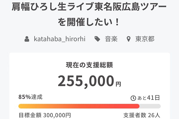 !目標達成まで85%となりました!