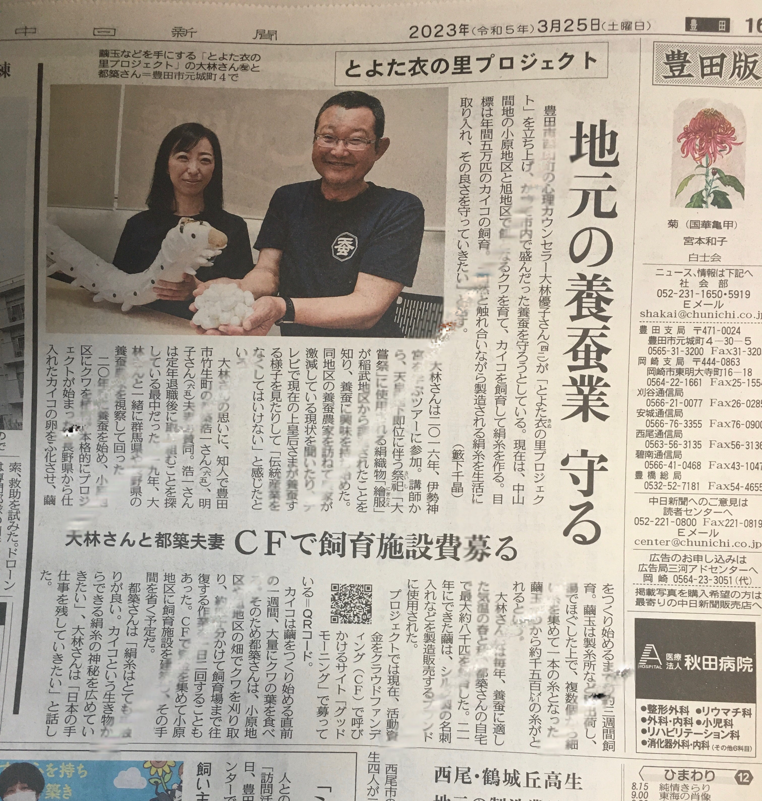 25日の中日新聞には私達の活動を掲載して頂く事ができました。