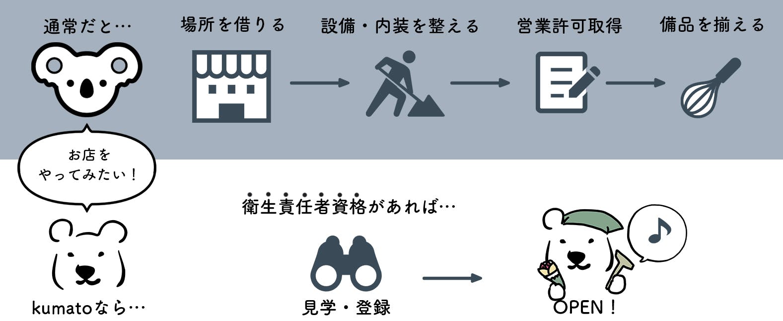 カフェ、お菓子教室などの開業を考えている方々のためのもので、修了後もkumatoを使っていただけたら嬉しいです。