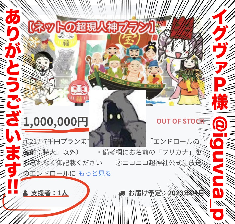 おかげ様で #ついなちゃんクラファン、本日、イグヴァPv @iguvua_p 様が、