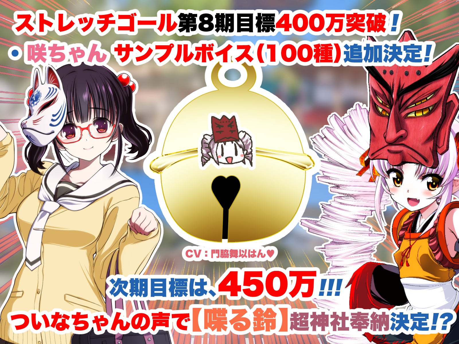 ξ(^_-)ξ「ついなちゃんクラファン、いよいよ400万円の大台突破や!!