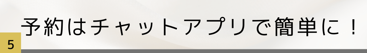 仕事の合間を見つけて、平日の昼間に電話を...なんて手間は不要です!次回の時間の予約や変更は、すべてチャットアプリから行えます。24時間対応の予約システムで、忙しいあなたにも気軽に利用いただけます!
