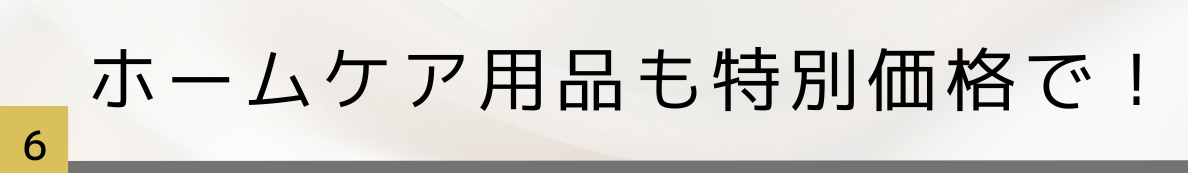素敵な顏でいるためには、日々のメンテナンスも大切。ご自宅でも無理なく使える価格帯のホームケア用品を、特別価格でご用意しております。