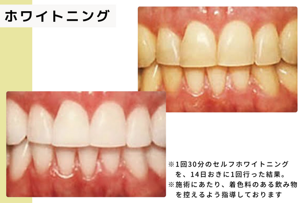 ※当店のホワイトニングメニューは、痛みなどを伴わず、低価格で実施できるセルフホワイトニングとなります。医療行為には該当しません。
