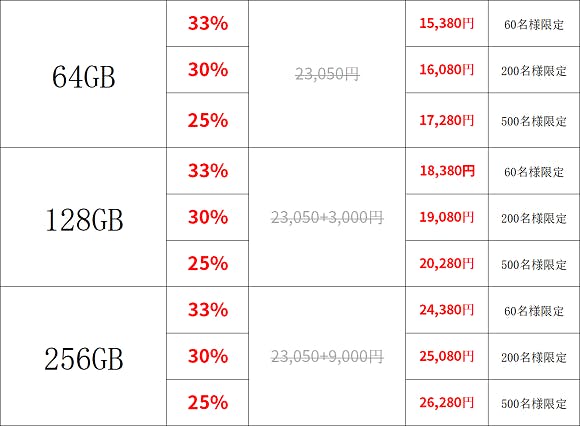今回のプロジェクトはありふれた64GBと128GBのほか、なんと256GBの超大ストレージ搭載のバージョンも用意しております。用途に合わせてお選びいただけます。