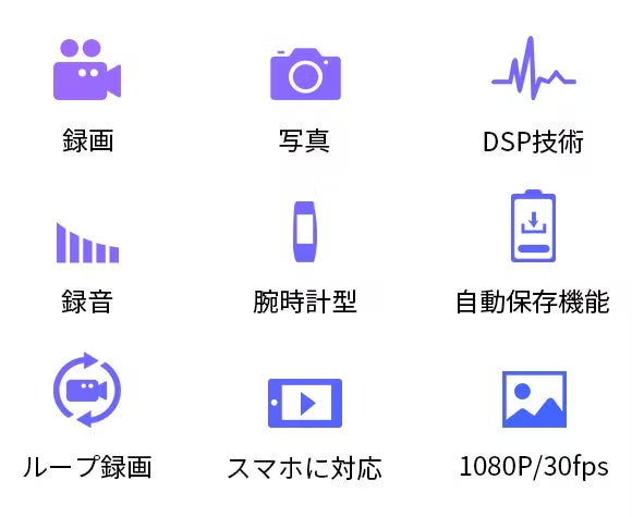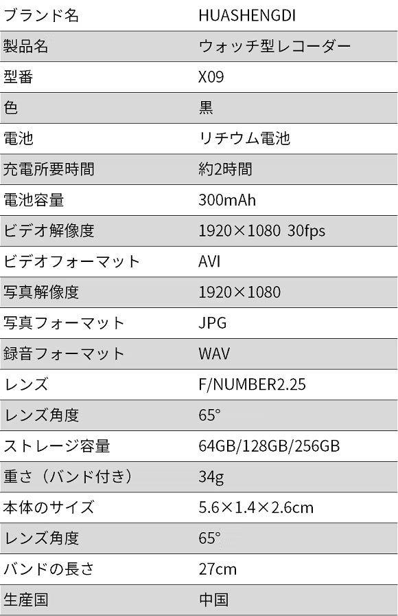 「X09」は録画・写真・録音・時間表示・Webカメラ・USBメモリの合計6つの機能を持ち、様々なシーンで活躍するミニサイズのウォッチ型レコーダーです。