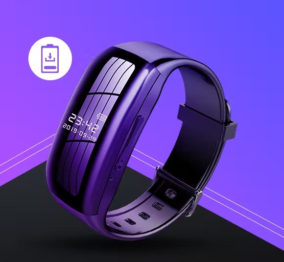 「X09」本体のサイズは5.6×1.4×2.6cmで、どこにでも持ち運びやすいのがポイントです。バンド付きの重さはたったの34g(約500円玉5枚分)で長時間腕に付けても負担を感じません。記録機能を使っていない場合、普通のデジタルウォッチとして時間を確認することもできます。