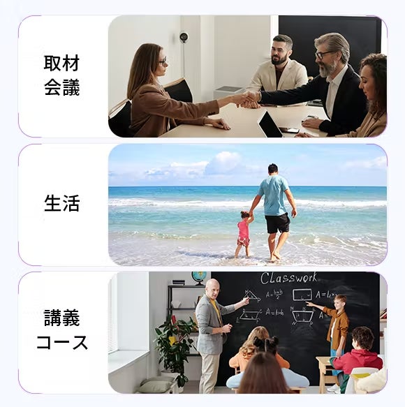 インタビュー&会議:コンパクトサイズなので相手への圧迫感を低減でき、自然なインタビューなどがしやすいです。ハイクオリティな音質でみんなのすばらしいアイディアを残さず記録します。