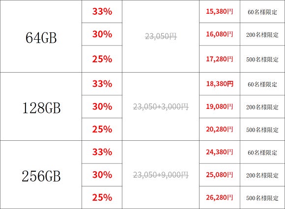 今回のプロジェクトはありふれた64GBと128GBのほか、なんと256GBの超大ストレージ搭載のバージョンも用意しております。用途に合わせてお選びいただけます。