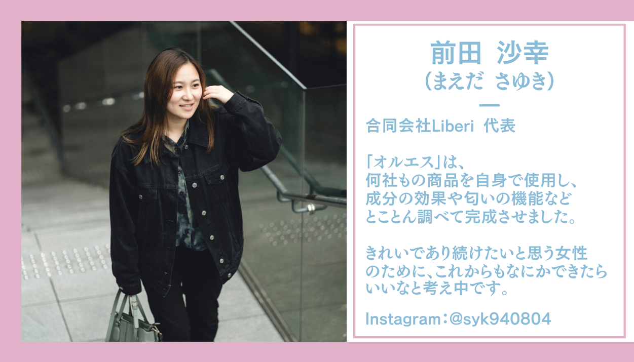 合同会社Liberi代表で「オルエス」デリケートケアオイル開発者の前田沙幸です。