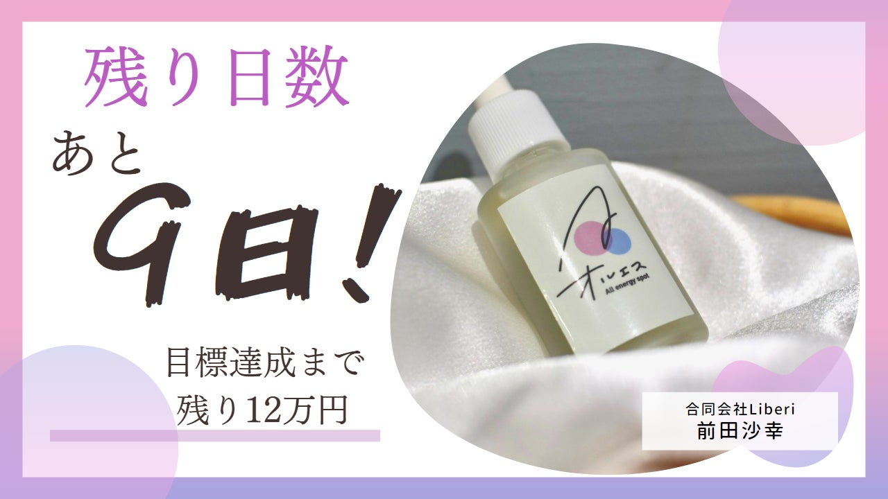 こんばんは!合同会社Liberiの前田です!クラウドファンディングが残すところあと10日になりました。準備期間も含めるとスタートして3か月くらい経過しましたがここまで沢山の方にご支援や拡散、サポートやアドバイスをしていただけるなんて思ってもいませんでした。。。!!『一人では絶対に見れなかった景色を見させていただいてるな』と、しみじみ感じております。日々、お会いする方にクラウドファンディングのことやオイルの効果、事業をやっている理由などお話していると・デリケートゾーンのケア自体が珍しいこと・女性のみがやること・恥ずかしいこと・人に話せないことというイメージが強すぎて私がやっていることは警戒心や不信感も多くネガティブな声も頂いたりします。でも『みんなに伝えたい!!!』という理由でやってると、今までの経験すべては人生の大切な糧になり財産になるんだと思えます。だからこそやることで大きく成長できるに違いないと確信しています!!わくわく、どきどきして未来が楽しみになってきます♬残り10日間、やり抜きます!よろしくお願いいたします!