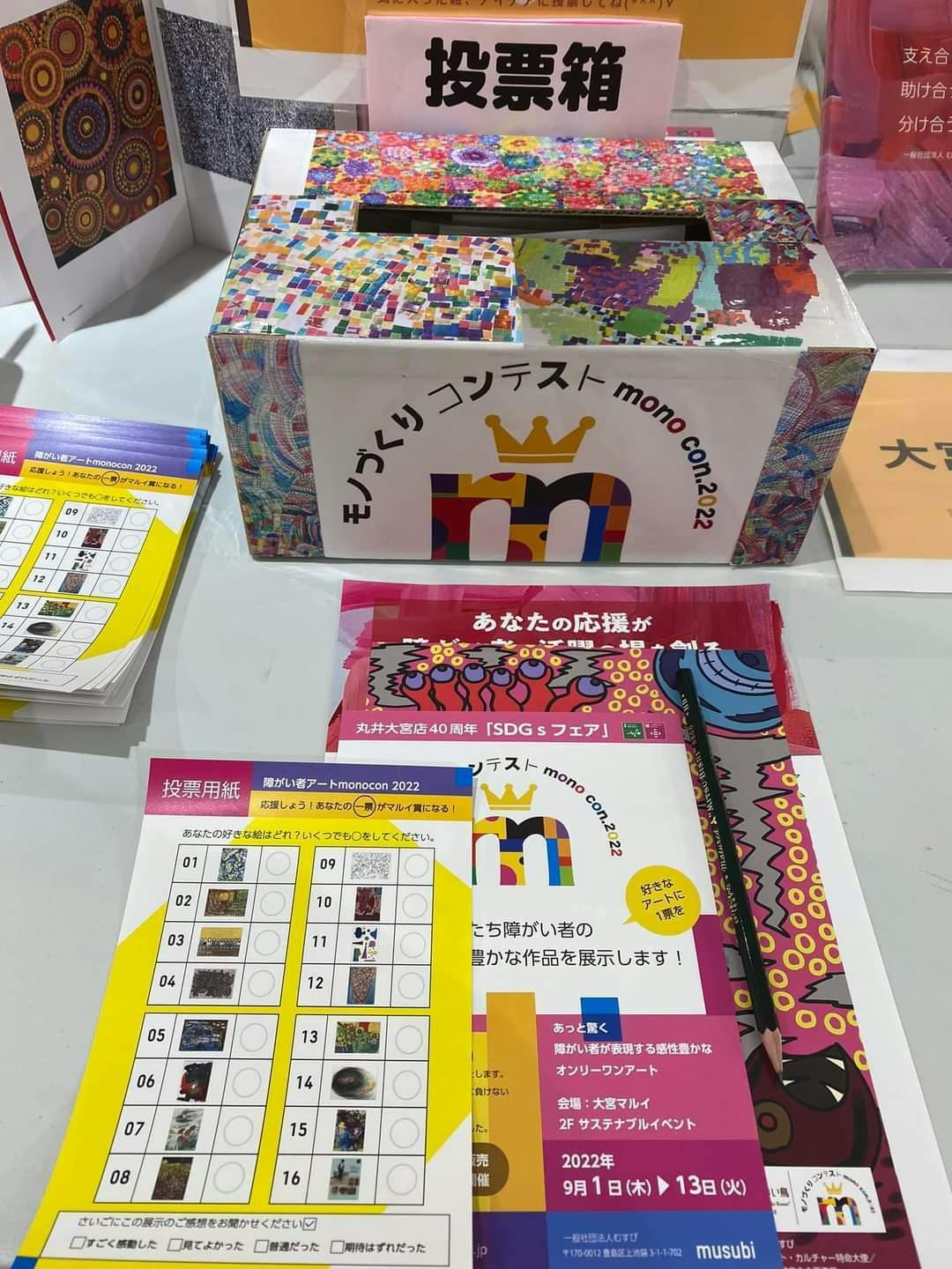 3回目となる2022年9月、「大宮マルイ40周年記念SDGsフェア」に於いて「モノづくりコンテスト2022作品展」を開催。一次審査を通過した作品16点を展示。展示会では一般来場者からの投票による「大宮マルイ賞」を設けました。