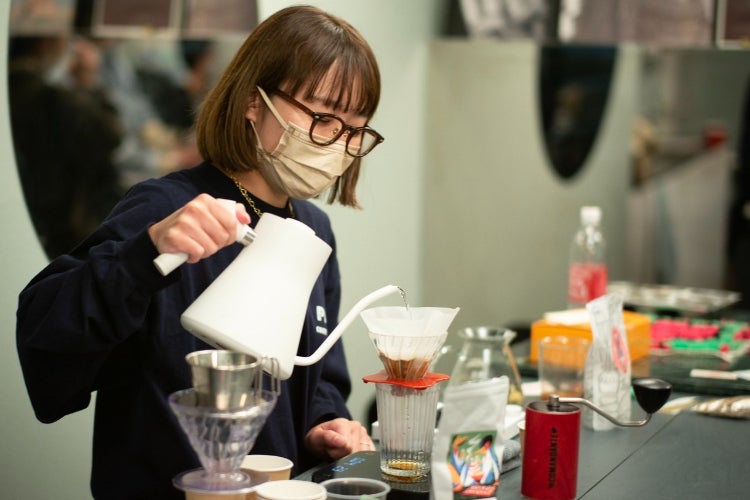 看板このおかしを食べるなら今日はこのコーヒーが合う!とおすすめしてコーヒーとおかしの合わさるたのしさを感じてもらったり、お話をたのしんでもらったり。その延長線上で、少しレクチャーした後に実際に自分でコーヒーを淹れてもらいおかしと楽しんでもらう、マインドフルネスのイベントをcarenというブランドをもって活動をしている幼馴染と一緒にしたりもしました。