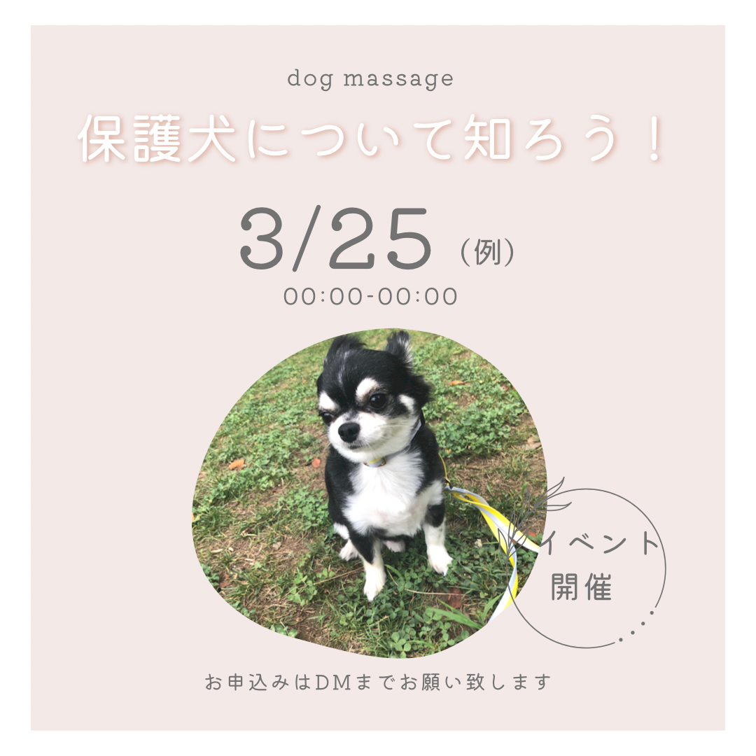 保護犬の存在を多くの人に認知して頂くため、保護犬紹介以外に譲渡会の実施など様々なイベントを行いたいと思います。