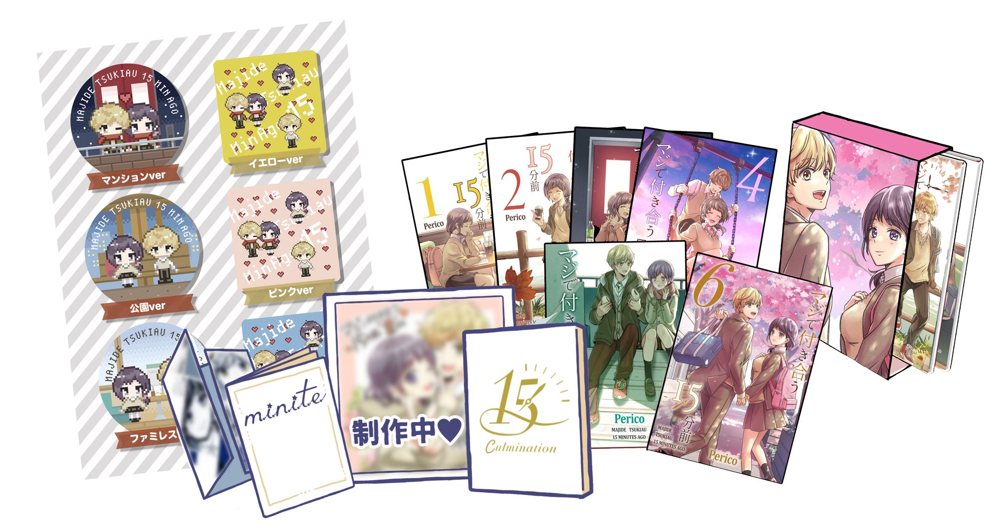 他にも全巻収納用のオリジナル単行本ケースやアクリルスタンドなど「マジで付き合う15分前」のオリジナルグッズを多数ご用意しました。すべて私Pericoが制作監修をさせて頂きます(絵柄未定のものについては完成次第、こちらのページで更新を加えて行きます)