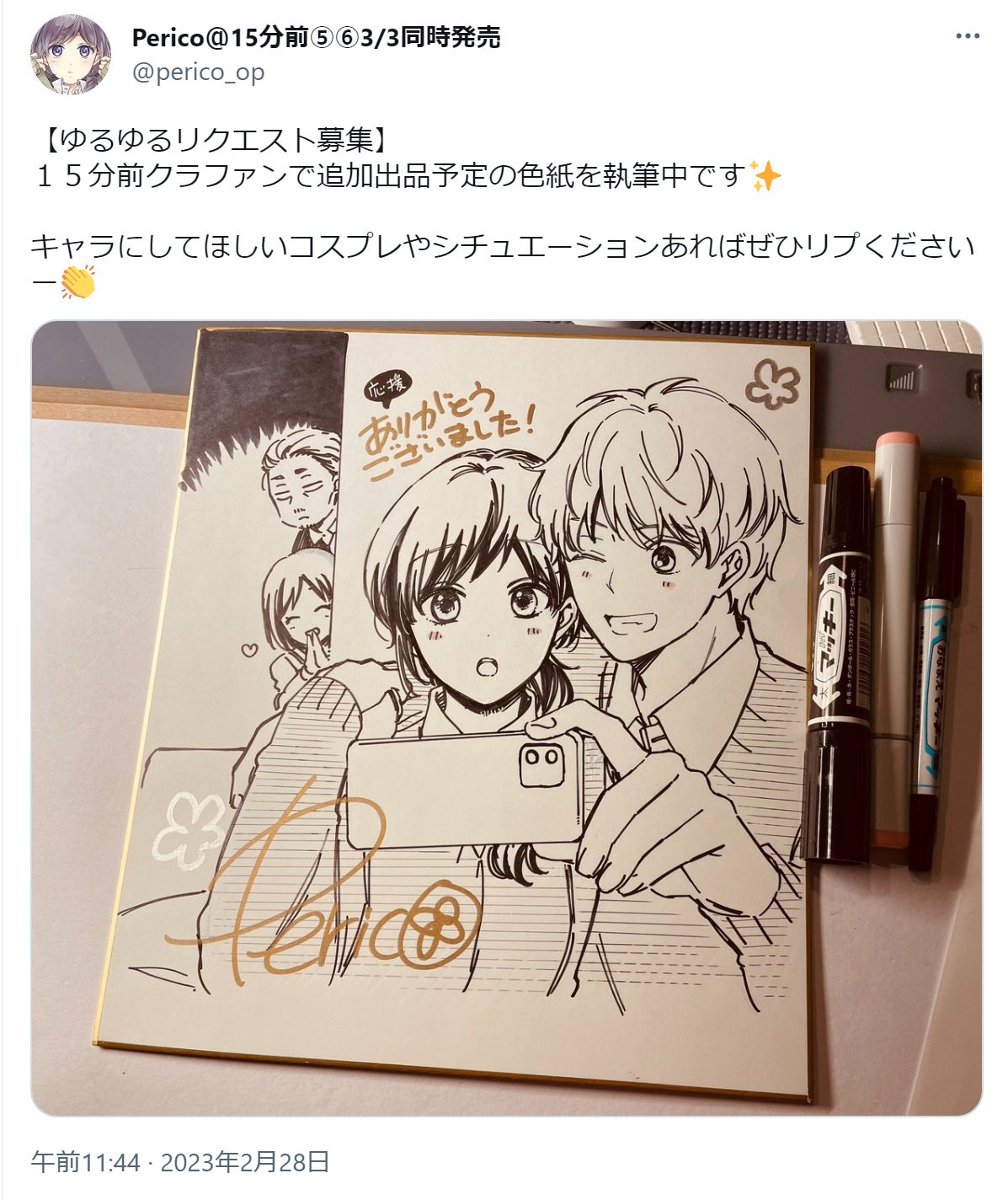 それとは別にプロジェクト最終日になる3月5日(日)0時~追加の直筆イラスト色紙のコース出品を予定しています!枚数・価格は未定ですが恐らく2~3万円の間で10枚くらいご用意できたらと思ってます(鋭意執筆中!)ので追加情報お待ち頂けたら嬉しいです!