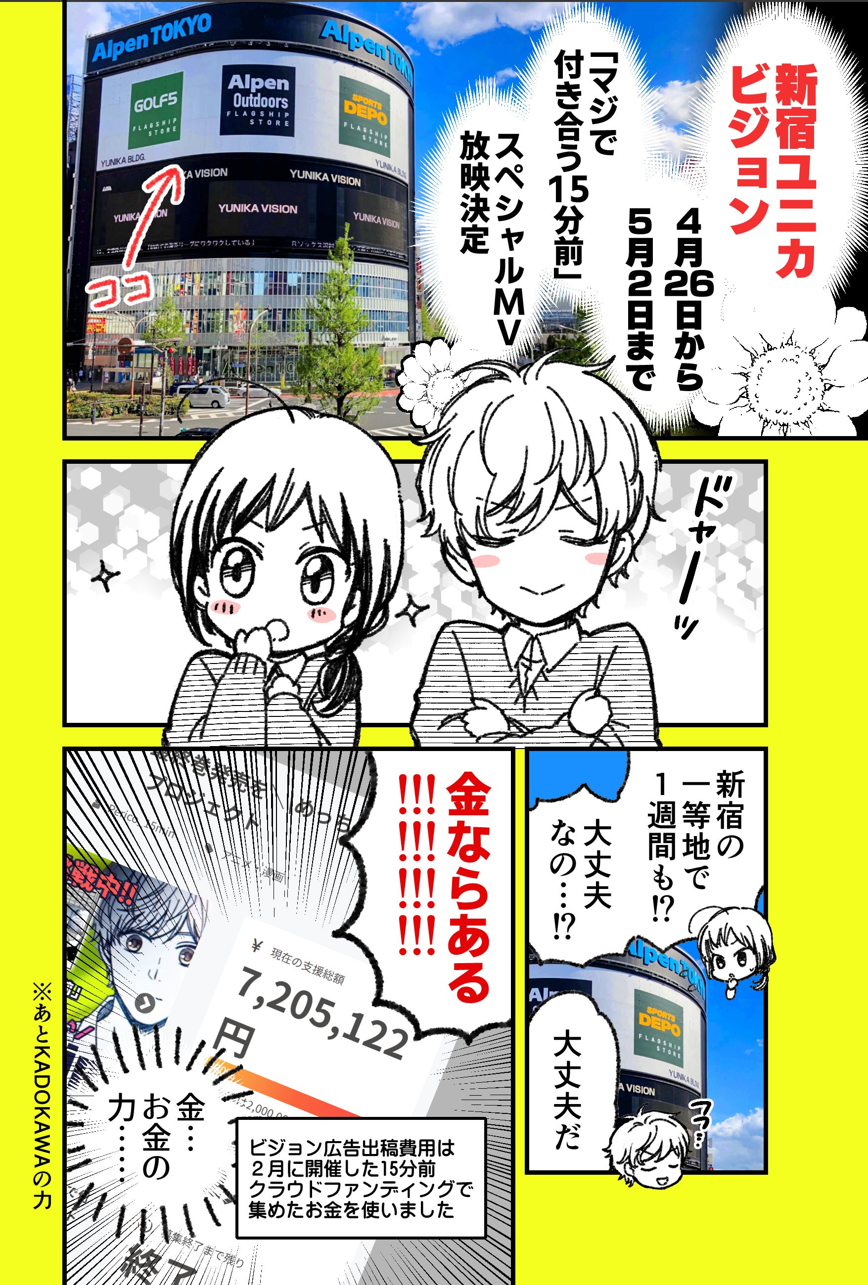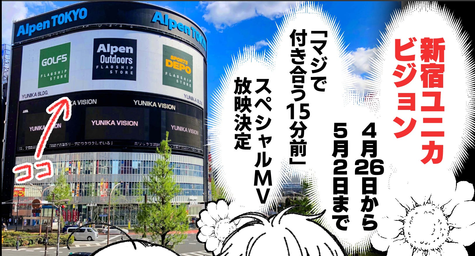 Twitterの方では一足先にお知らせさせて頂きましたが、GWの「マジで付き合う15分前」のビジョン広告の場所と日程が決定しました!!