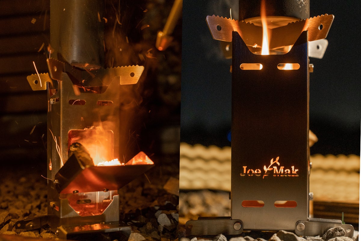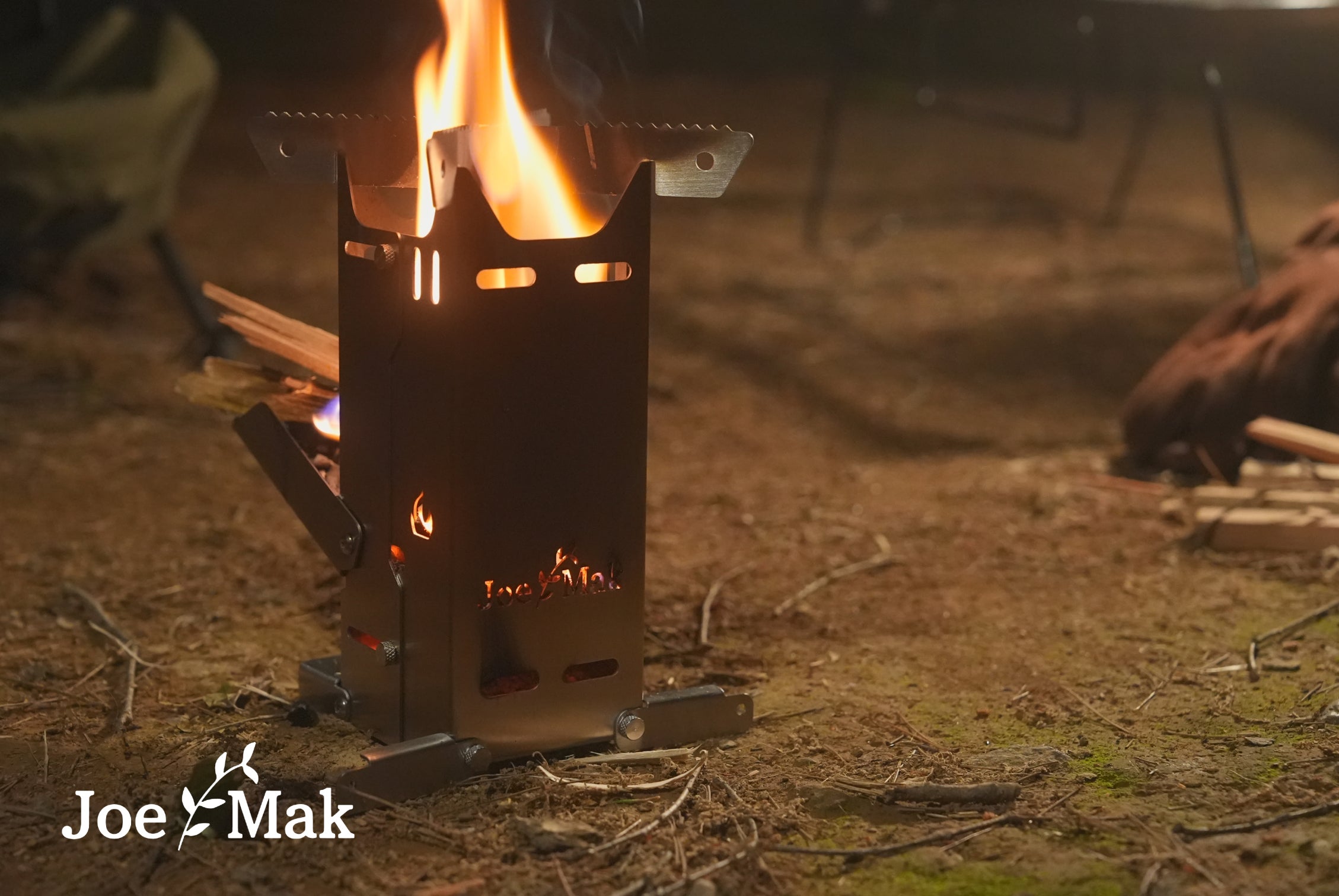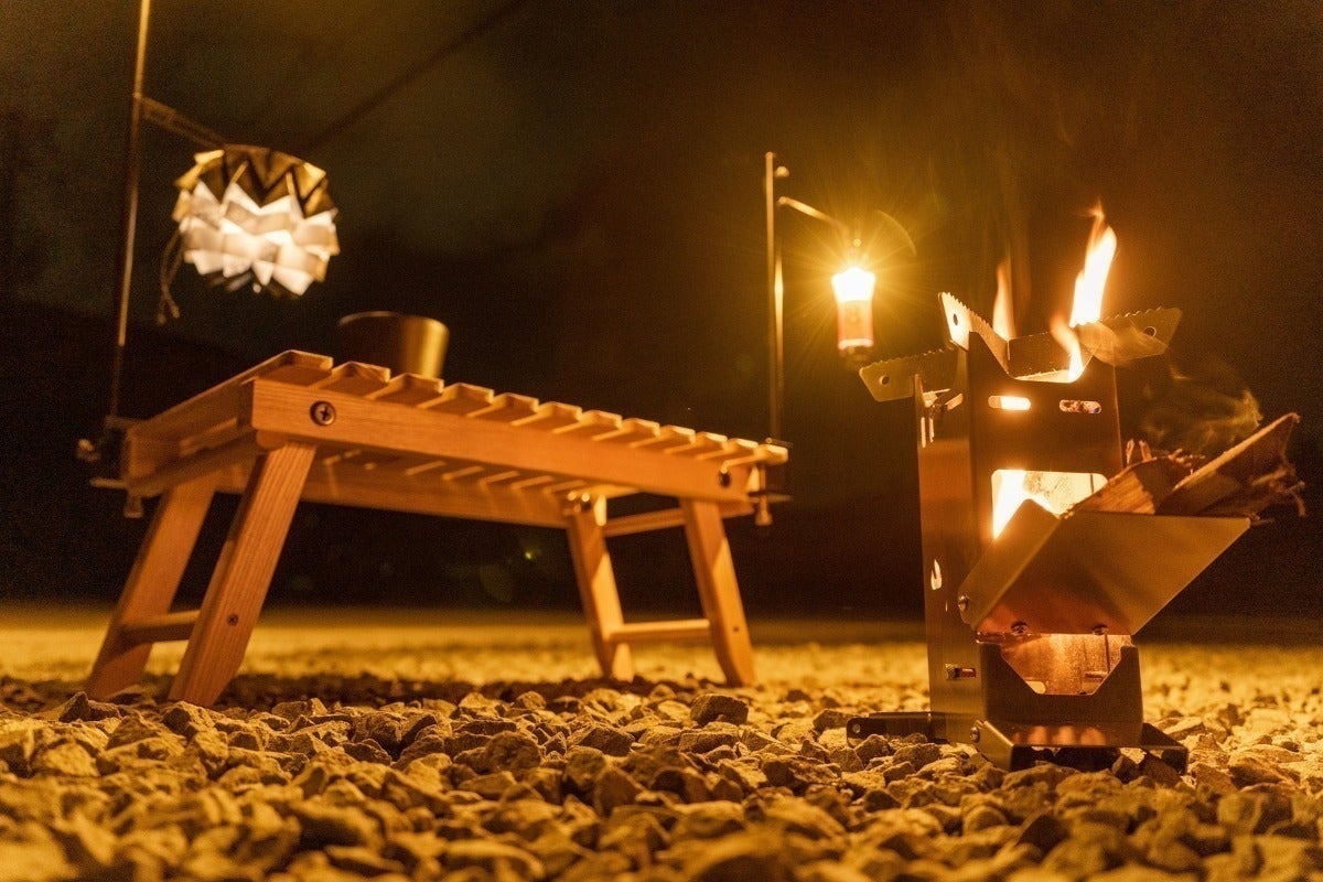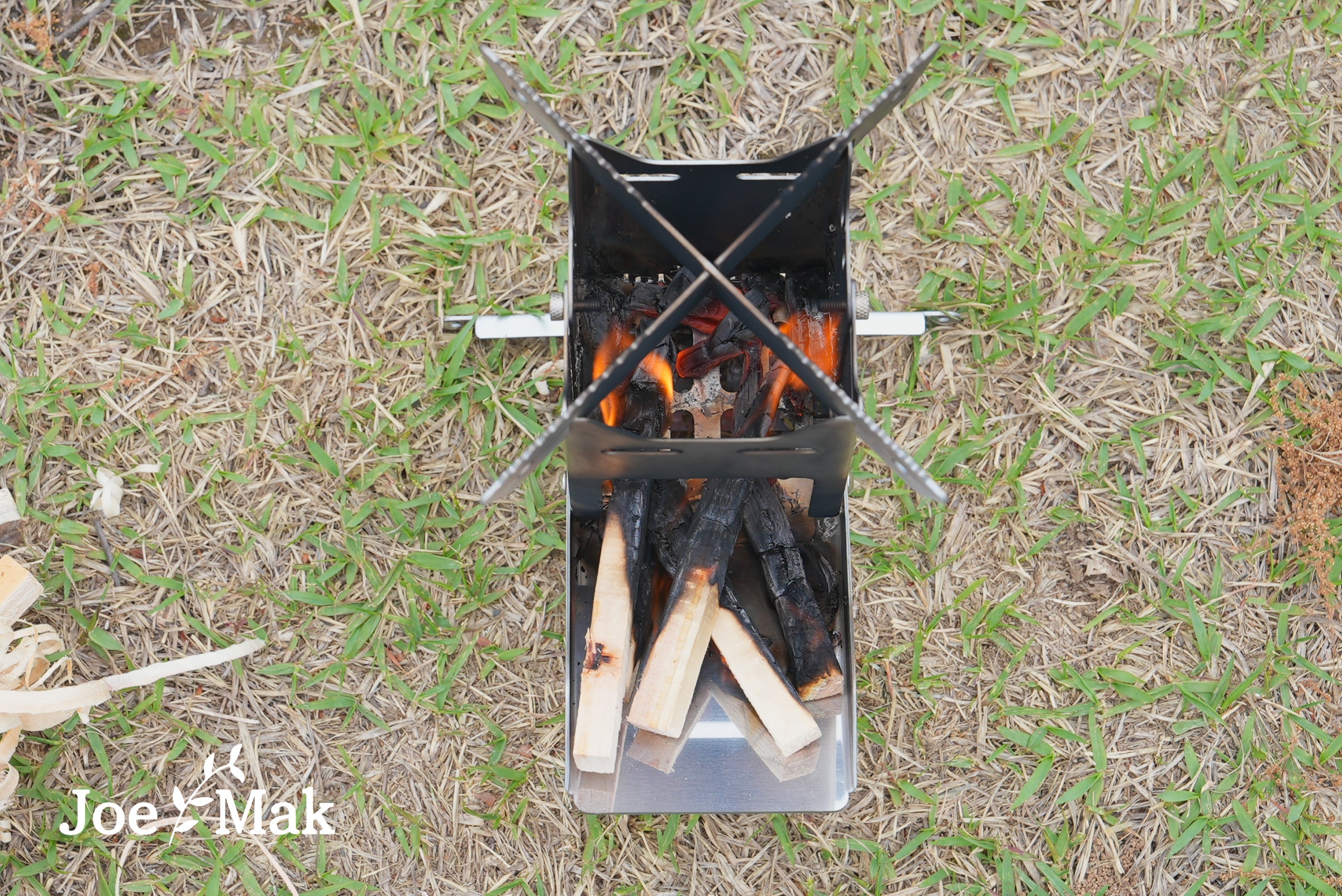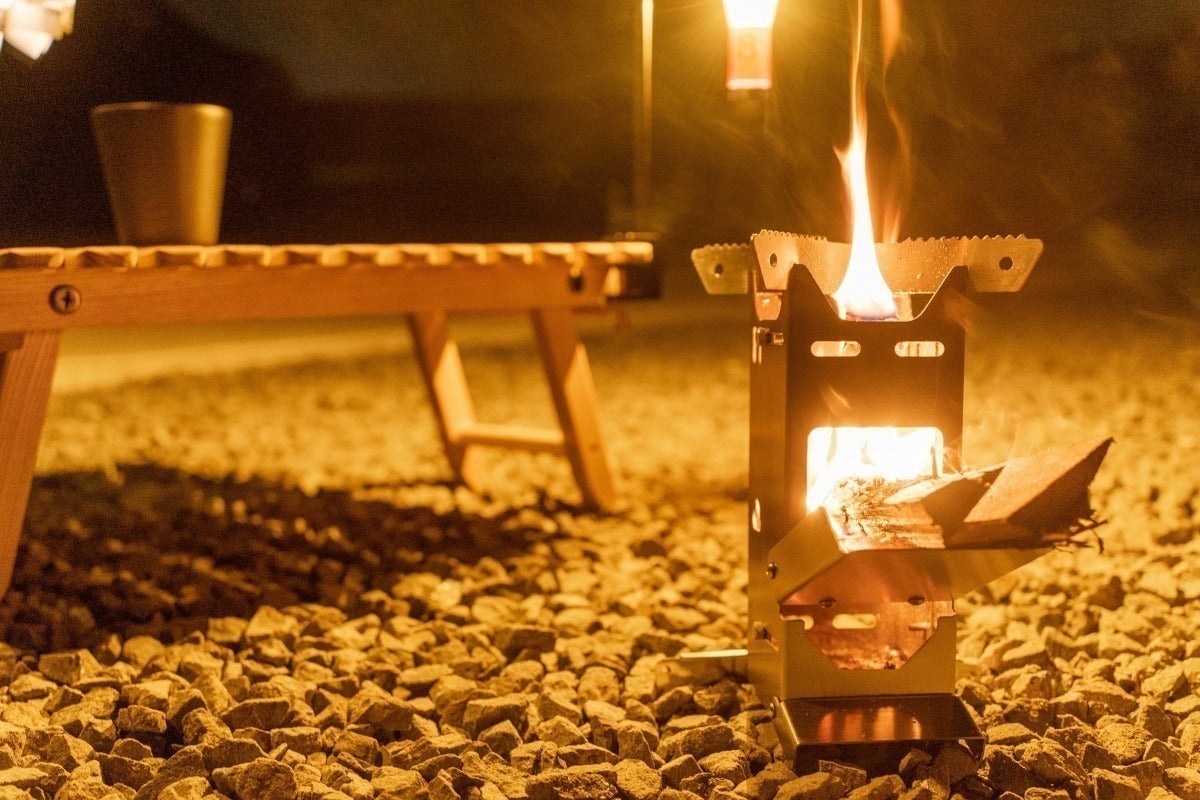 ネジを緩めて本体を広げてネジを締め、土台を広げて、五徳を乗せて完了です!