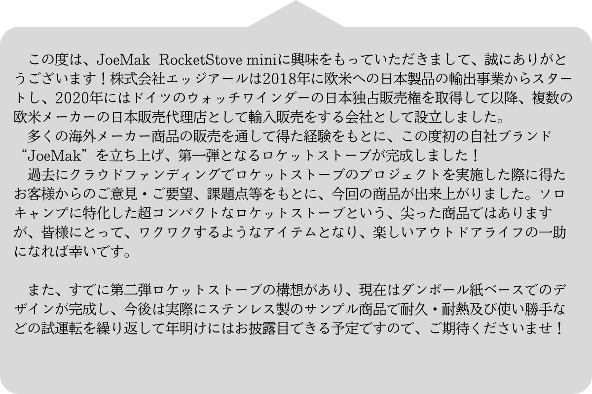 2023/11/16 22:35ご支援いただきました皆様この度はJoeMakロケットストーブミニへのご支援、誠にありがとうございます。生産状況の進捗が良くて、予定よりも早くお届けできると活動報告でお伝えしておりましたにも関わらず、11月16日現在、未だお届けできておらず申し訳ございません。商品の製造までは予定よりも早く進んでいて、10月中旬には発送準備ができたのですが、工場の不定期の検査が入り3週間業務がストップしてしまっておりました。先週発送準備が完了して、今週には工場から弊社倉庫に発送される予定です。進捗がありましたら、すぐにご報告させていただきますので、今しばらくお待ちくださいませ。せっかくお待ちいただいているのに、早くお届けできず申し訳ございません!引き続き、宜しくお願いいたします。 もっと見る