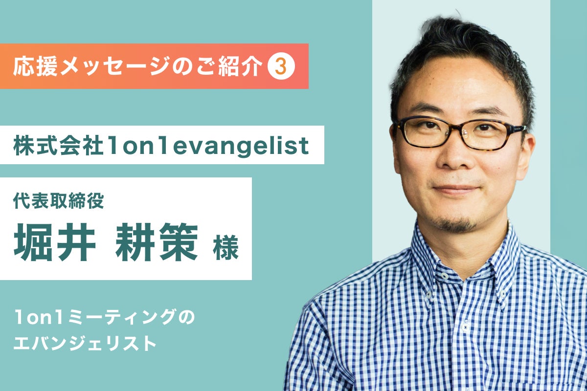 株式会社ヤフーで1on1 MTGの浸透に携わり、現在は1on1 エバンジェリストとして活躍されている堀井耕策 様より応援のメッセージをいただきましたのでご紹介いたします!