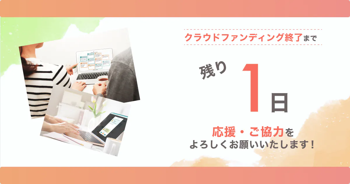 クラウドファンディング残り1日、いよいよ終了が近づいてまいりました。