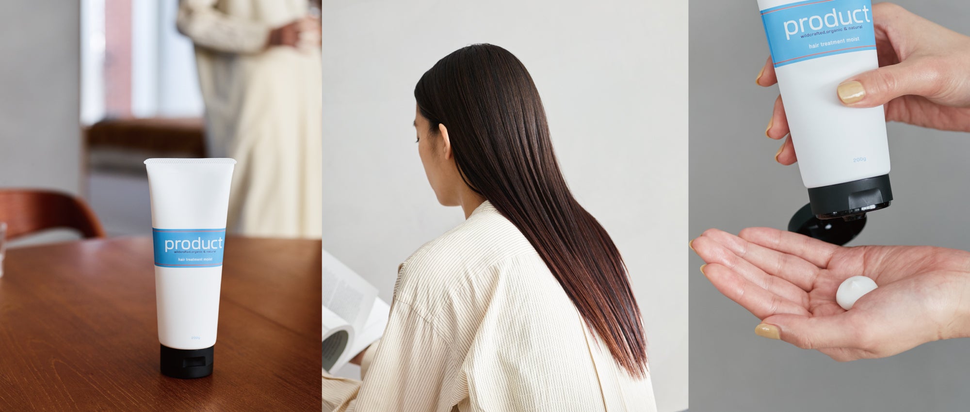 ヘアワックスからスタートしたproductですが、お客様のお声をいただきながらスタイリング剤だけでなくヘアケア剤にも力を入れたい!と考え、シャンプー・コンディショナーに続き、より集中ケアができる『トリートメント』を開発いたしました。