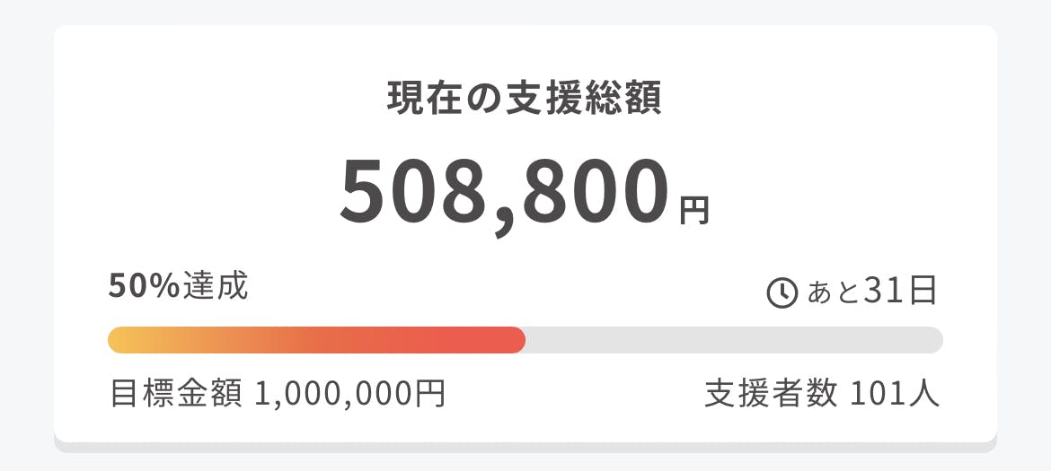 2月27日、101名の方にご支援いただき、目標額の50%を達成いたしました!