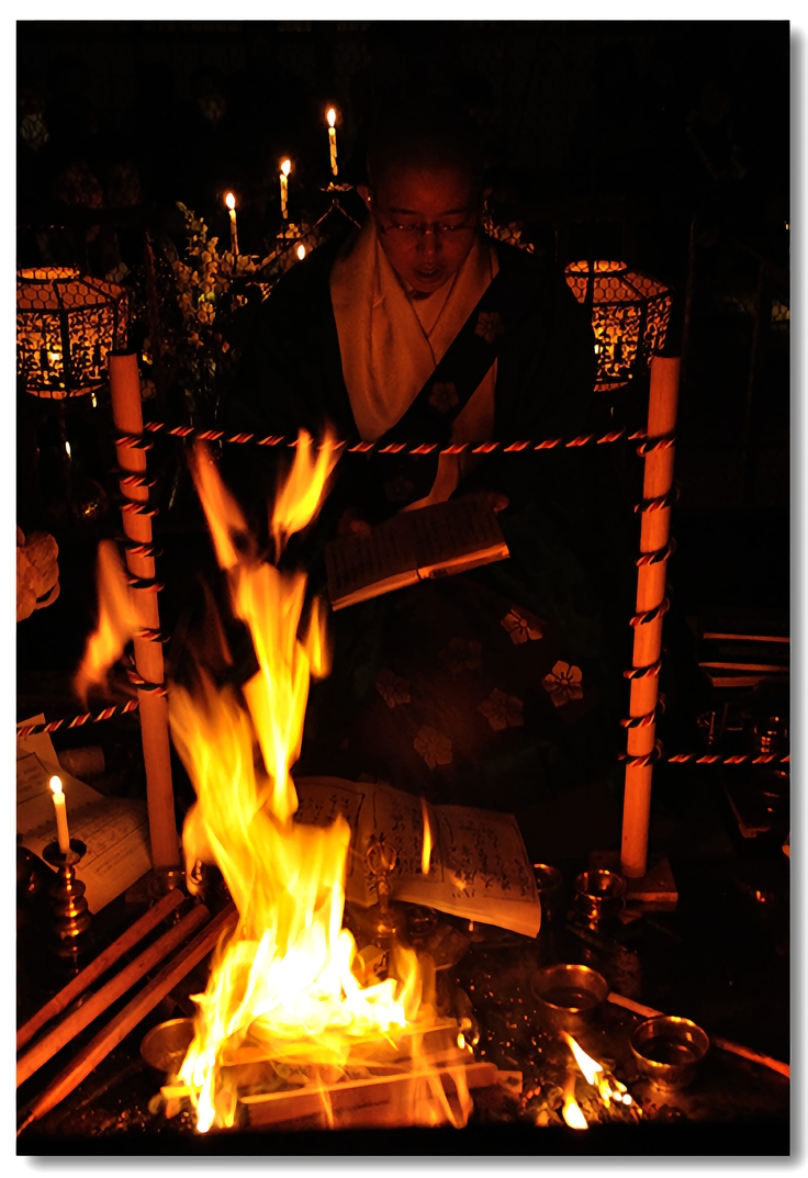 ご本尊の前において僧侶が様々な供物を焚き上げ厄や災いを払い加護を願う修行です。
