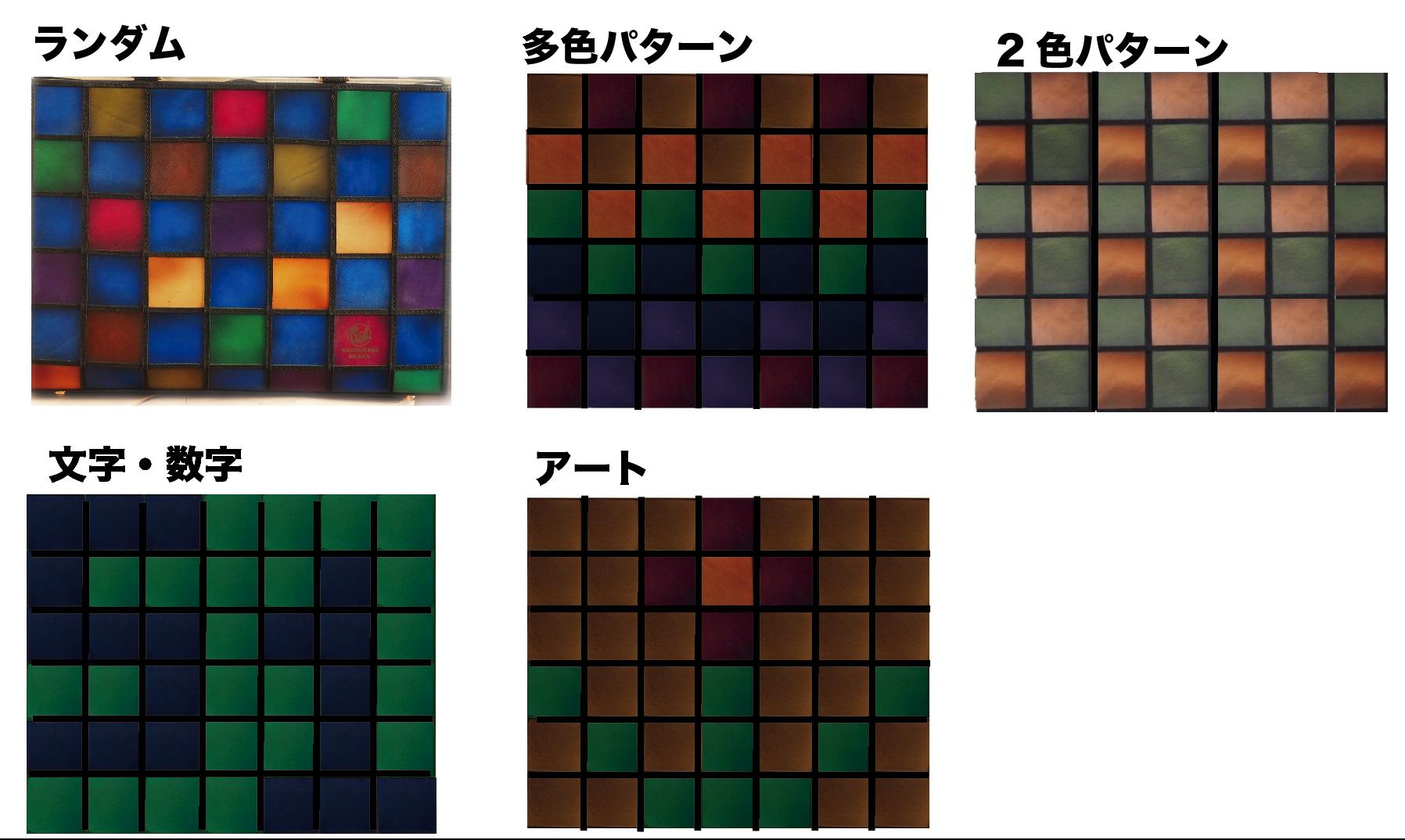 カラフルマスに、さまざまな色を組み合わせ、自由自在のデザインが可能です。カラフルマスを使ってのデザインの組み合わせは無限大。是非誰も思いつかないようなデザインを考えてみてください。
