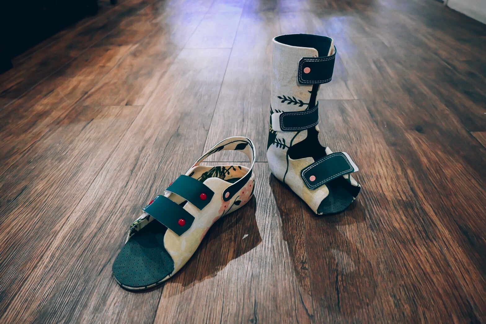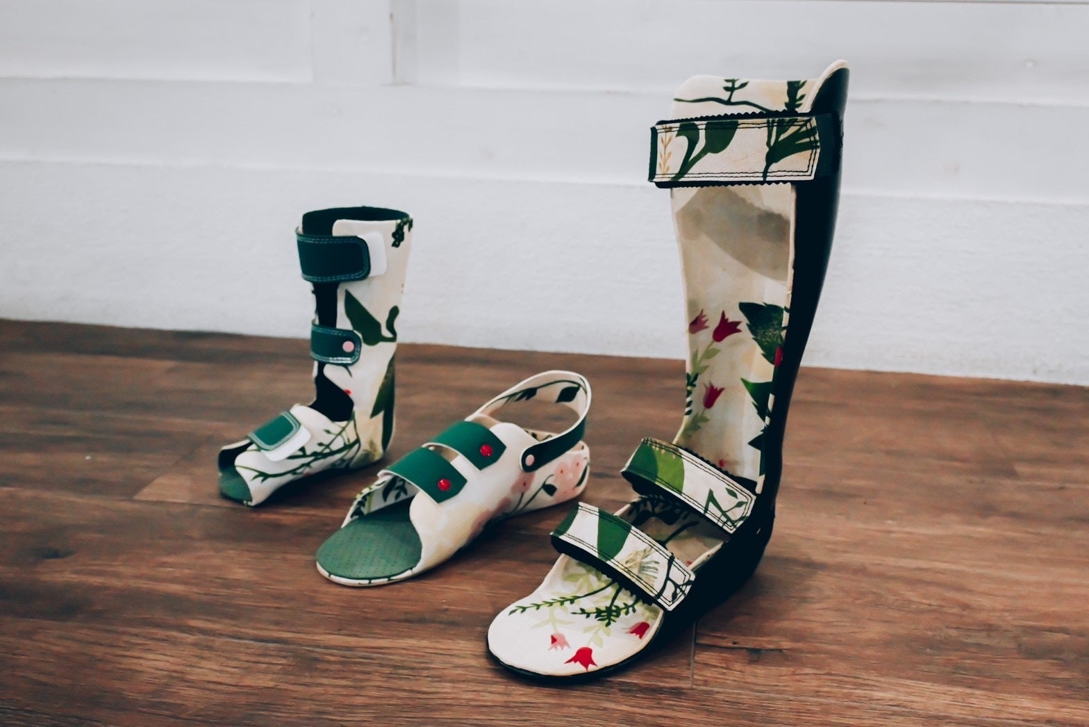 何気ない日常の中で咲いている花や草木のように、義足や装具を装着する日常を少しでも生き生きと歩いてほしいと考え、アーティストと共同でデザインから製作まで行った装具です。