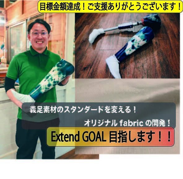 【 残す所あと3日!! 最終目標200%達成へ!!】これまでご支援頂いた方々、温かい応援で背中を押してくれた皆様!義肢装具×デザインへのこれからの活動のBOOSTERとして始まったこの挑戦も残す所あと3日となりました!スタート時には想像もつかなかったたくさんの方々にご支援頂くことが出来て、本当に感謝しかありません!これまで応援してくれてた方々や、これを期に応援してくださる方々色んな方と今回繋がれた事が本当に凄い事だと感じています!自分ごとじゃないようなぐらい。笑そんな挑戦も残りわずかとなりました!いよいよゴールが見えて、実際にオリジナル生地を作るための準備が始まります。早速、明日には実際生地を織って頂く方々との打ち合わせがあります。いよいよ始まる取り組みにとてもワクワクしております!!このワクワクを何とか「 200%達成 」と共に加速させて行きたいと思います!残りわずかですが、さらなる応援、ご支援よろしくお願い致します!!応援してくださる皆様と一緒に” Extend Goal "を迎えたい!