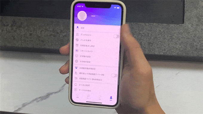 ※使用前に、アプリで腕上げ点灯機能をONにしておいてください。