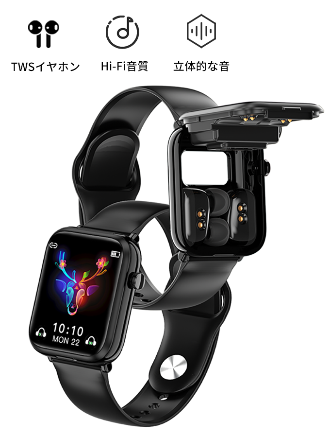 TWSイヤホンをスマートウォッチ内に収納するだけで充電できます。約1.5時間でフル充電になり、約3.5時間の音楽再生が可能です。通話中、バッテリー切れを心配する必要はありません。