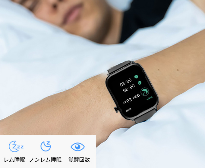 専用アプリを利用して、自宅で手軽におおよその睡眠状態を確認することができます。睡眠時間、レム睡眠とノンレム睡眠、覚醒回数などのデータを自動で記録し、睡眠の改善に役立たせます。